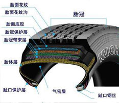 輪胎的類型有:國際標(biāo)準(zhǔn)的輪胎代號(hào),以毫米為單位表示斷面寬度和扁平比的百分?jǐn)?shù)。后面加上:輪胎類型代號(hào),輪輞直徑(英寸),負(fù)荷指數(shù)(許用承載質(zhì)量代號(hào)),許用車速代號(hào)。